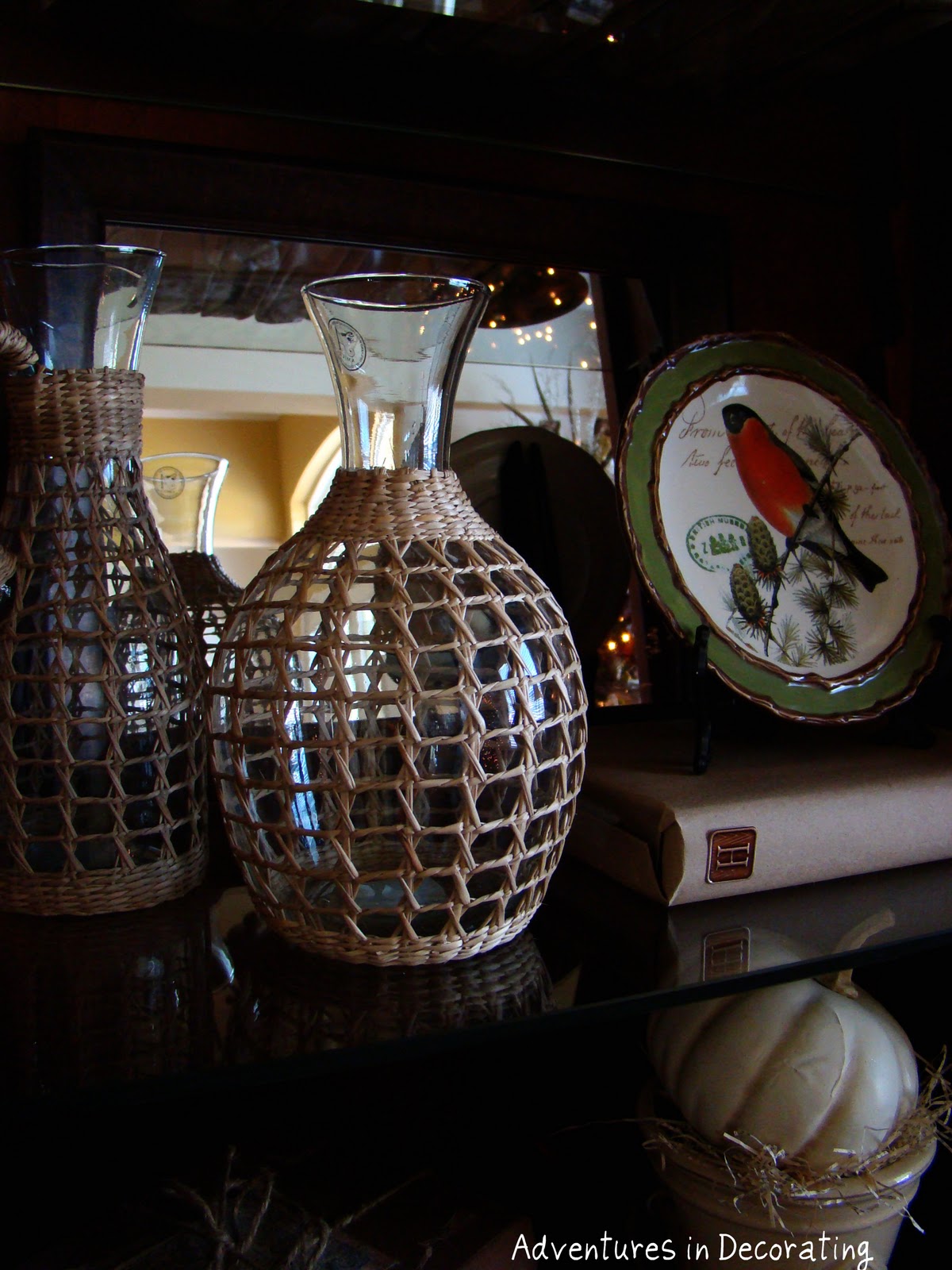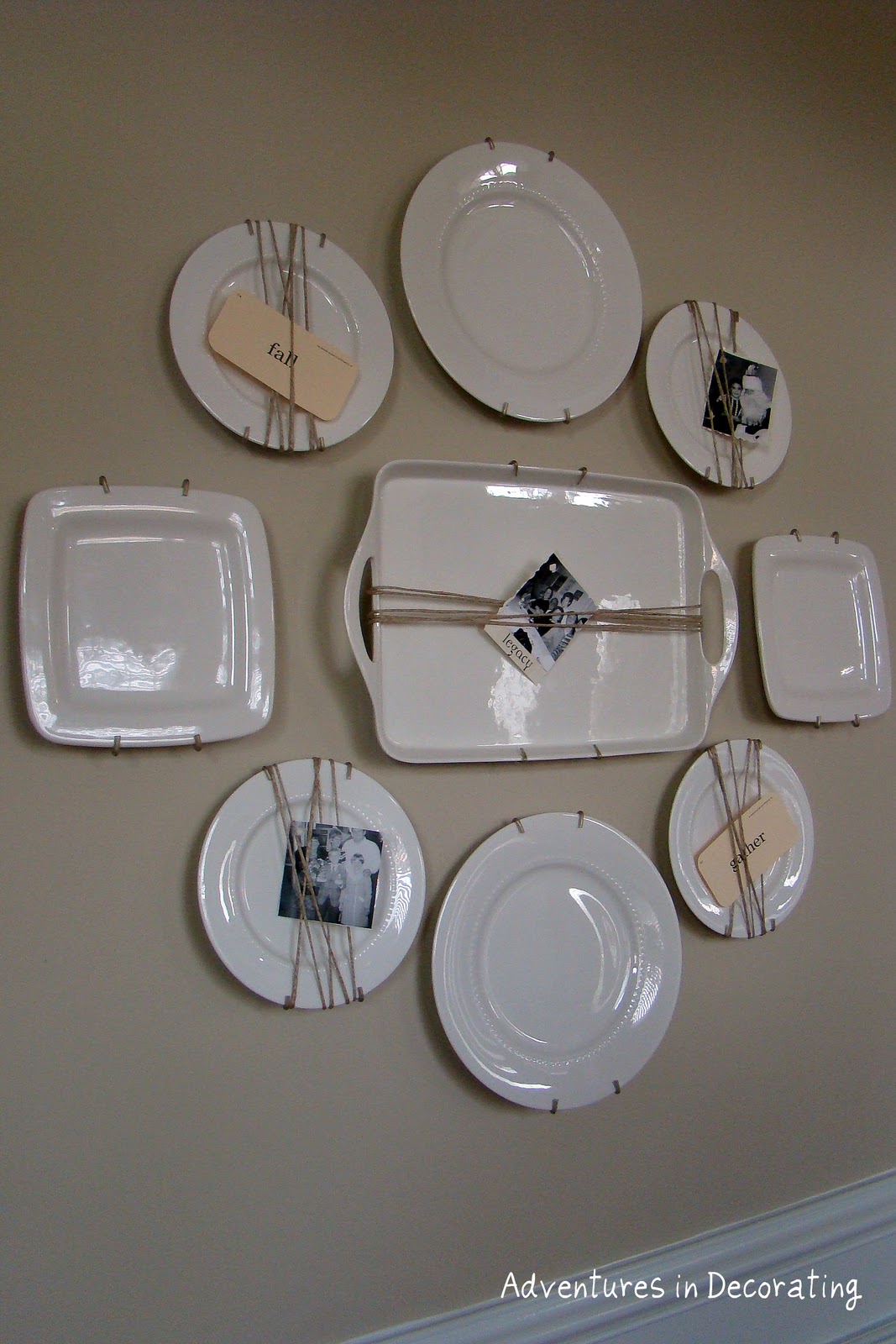 On the other side of the room, I decided to make my first attempt at a plate collection. And, of course, I had to steal PB's idea of adding the twine and pictures: