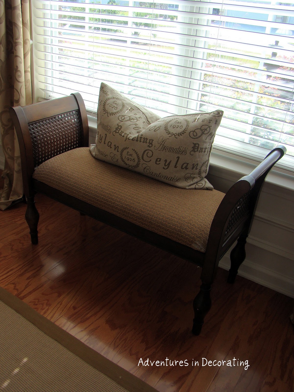 This bench used to sit at the foot of our bed. I placed it in the window and added a fun grain sack pillow from Tuesday Morning:
