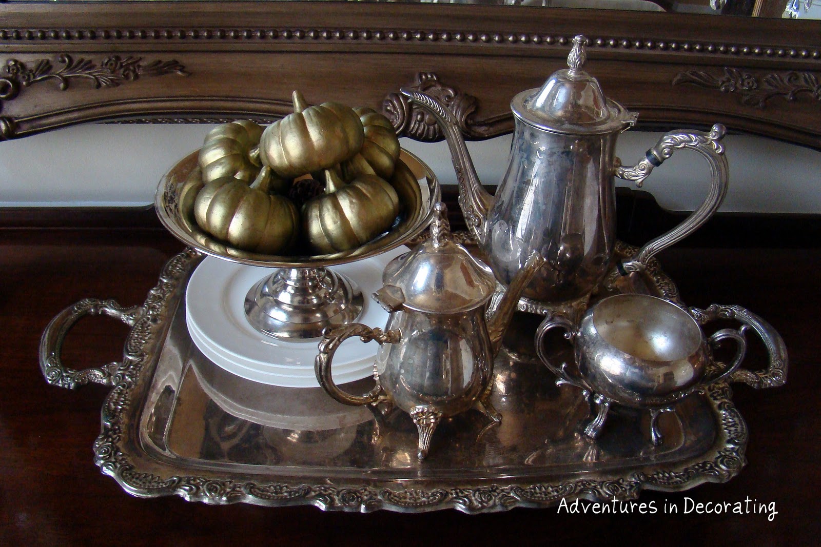 I also found the *perty* silver vase and candlesticks as well and love it on the table, mixed with the burlap runner: