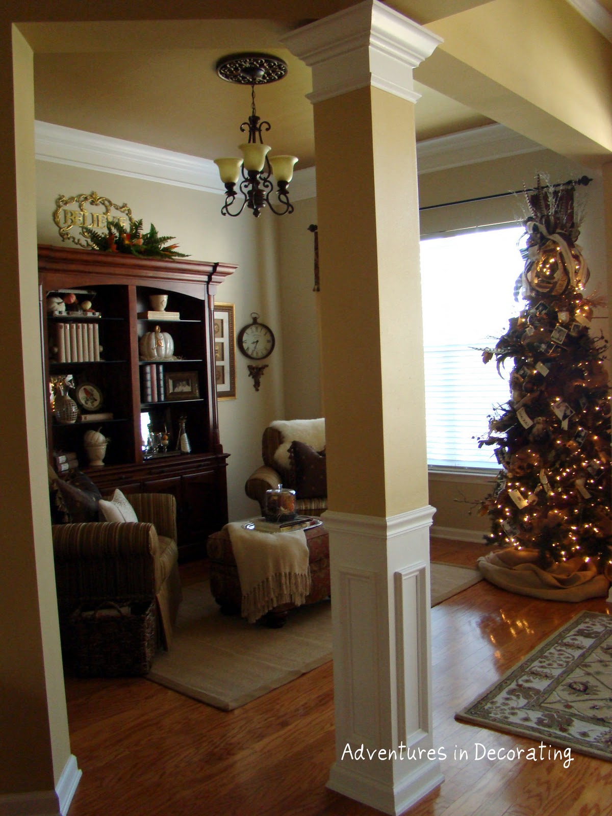 BEFORE: Window treatments done in gold and red that just seemed to get lost against the dark wall color: