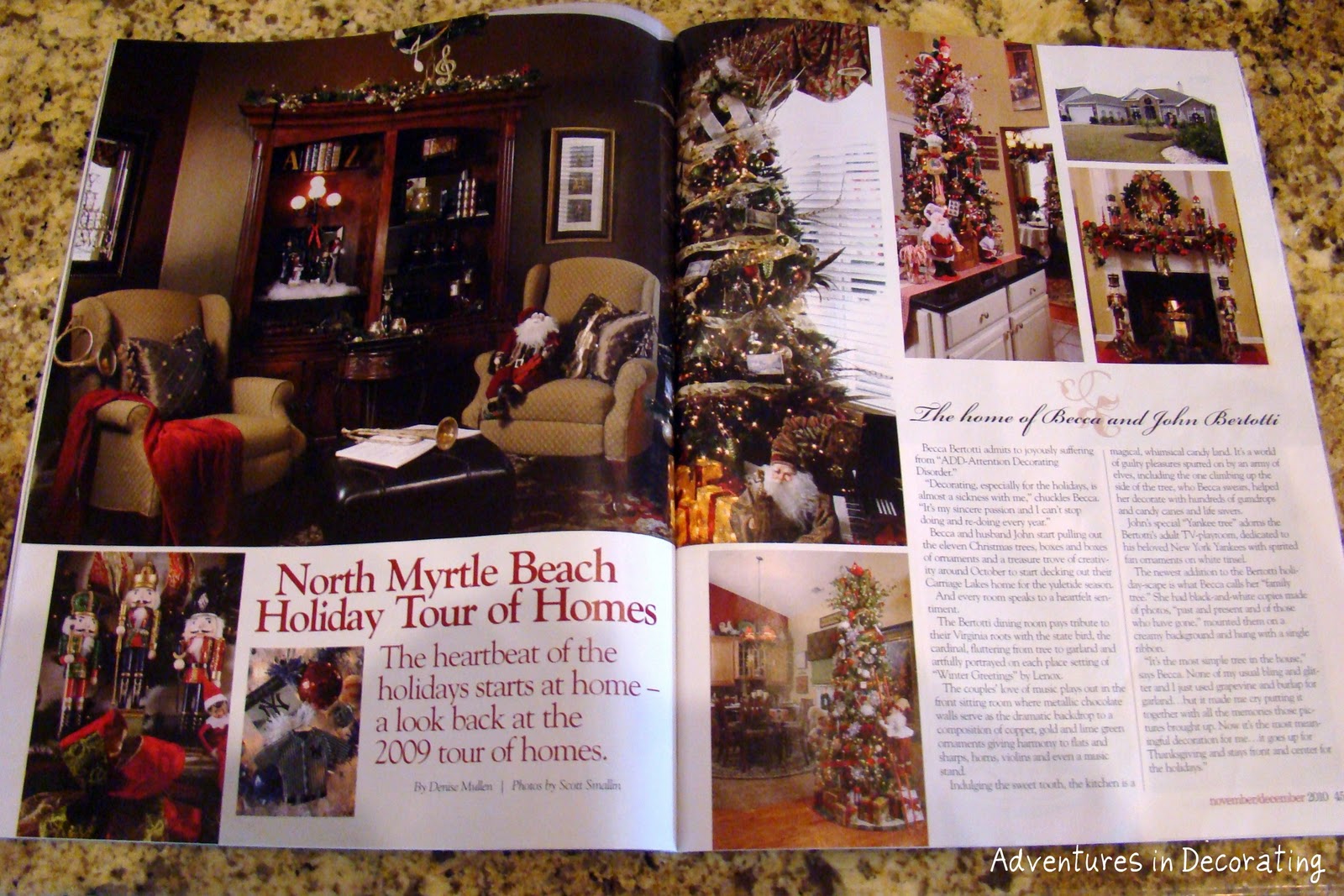 Last week, a local magazine, Coastal Carolina Home & Lifestyle, did a big ol' spread on the homes that were on the "Christmas Tour of Homes" last year ... our humble abode being one of them. They included several pictures and an article for each house. *Thare* she is, in all her Christmas glory (feel free to click on pics to enlarge):