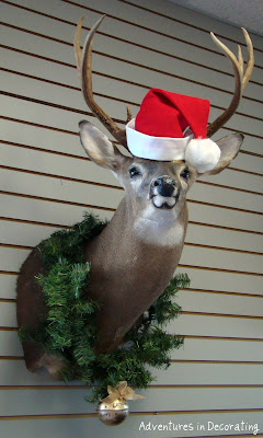 And, as for those mounted deer ... well, of course they needed some Christmas cheer, too! HowEVER, I've never come close (by choice) to a mounted deer head. It was a funny (no, make that pa-THETIC) sight to see me tossing the garland around their necks to form a wreath, praying every.step.of.the.way that: a) the deer head didn't fall on me; b) it didn't all of sudden yell "boo," sending me to the floor; or 10) I didn't have a panic attack. Seriously, folks, I was sweating! When it was time to add the Santa hats ... well, forget it! I couldn't do it ... I couldn't get *that* close. Thankfully, Kayla and her receptionist, Melissa, did that for me. I'm so ashamed!