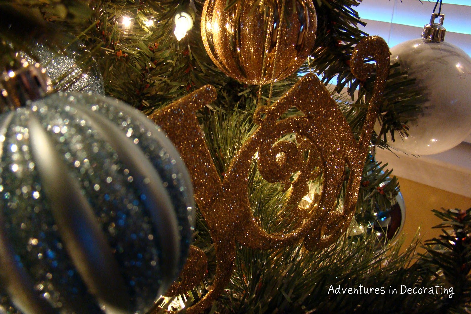 And, the Christmas chandie with colored balls, ribbons and snowflakes: