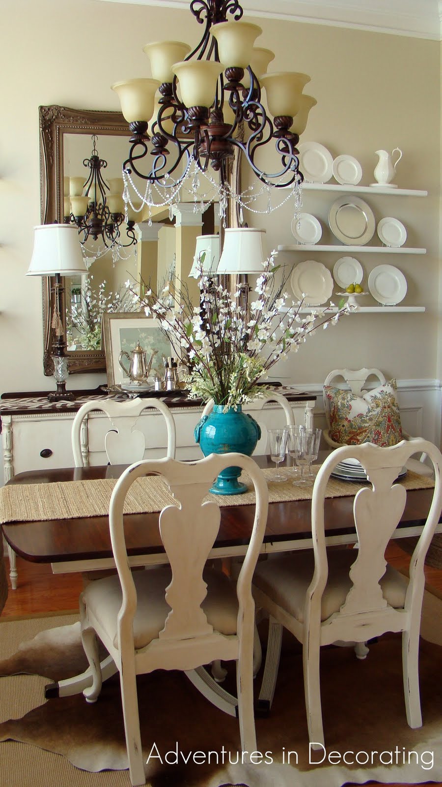 And, how she ties in with the tops of the table and buffet. Annnnd, yes (*hangs head low*) ... I changed out my pillows: